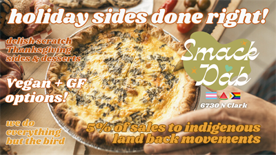 This year, every forkful does a little good. Smack Dab’s Thanksgiving sides aren’t just feeding families, they’re feeding the community. Every order helps fund local meal programs and free community dinners that have already given back over $80,000. From flaky biscuits to mashed potatoes smoother than your best pickup line, these dishes taste even better when you know they’re making a difference. Place your order by Saturday at 5 PM and join Smack Dab in keeping Chicago fed, happy, and full of heart.